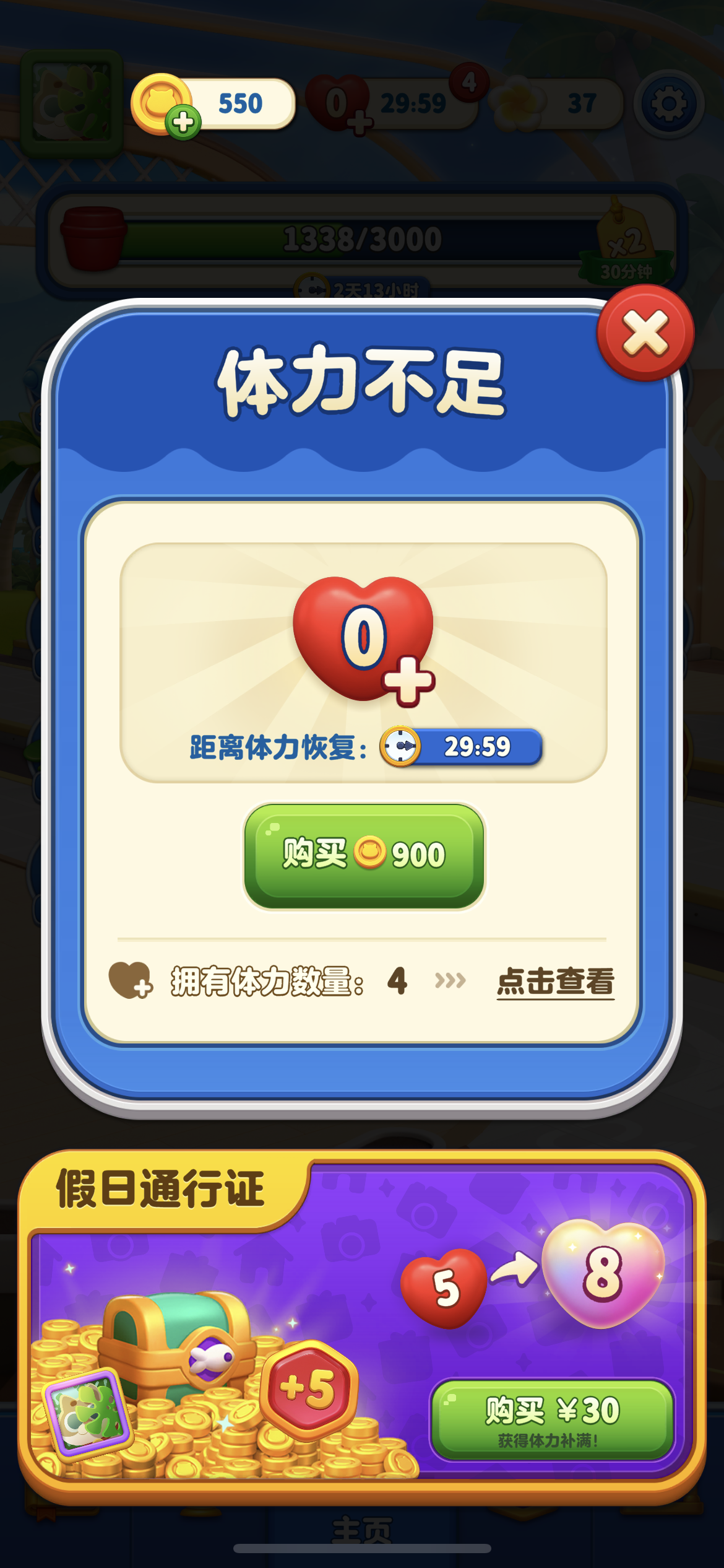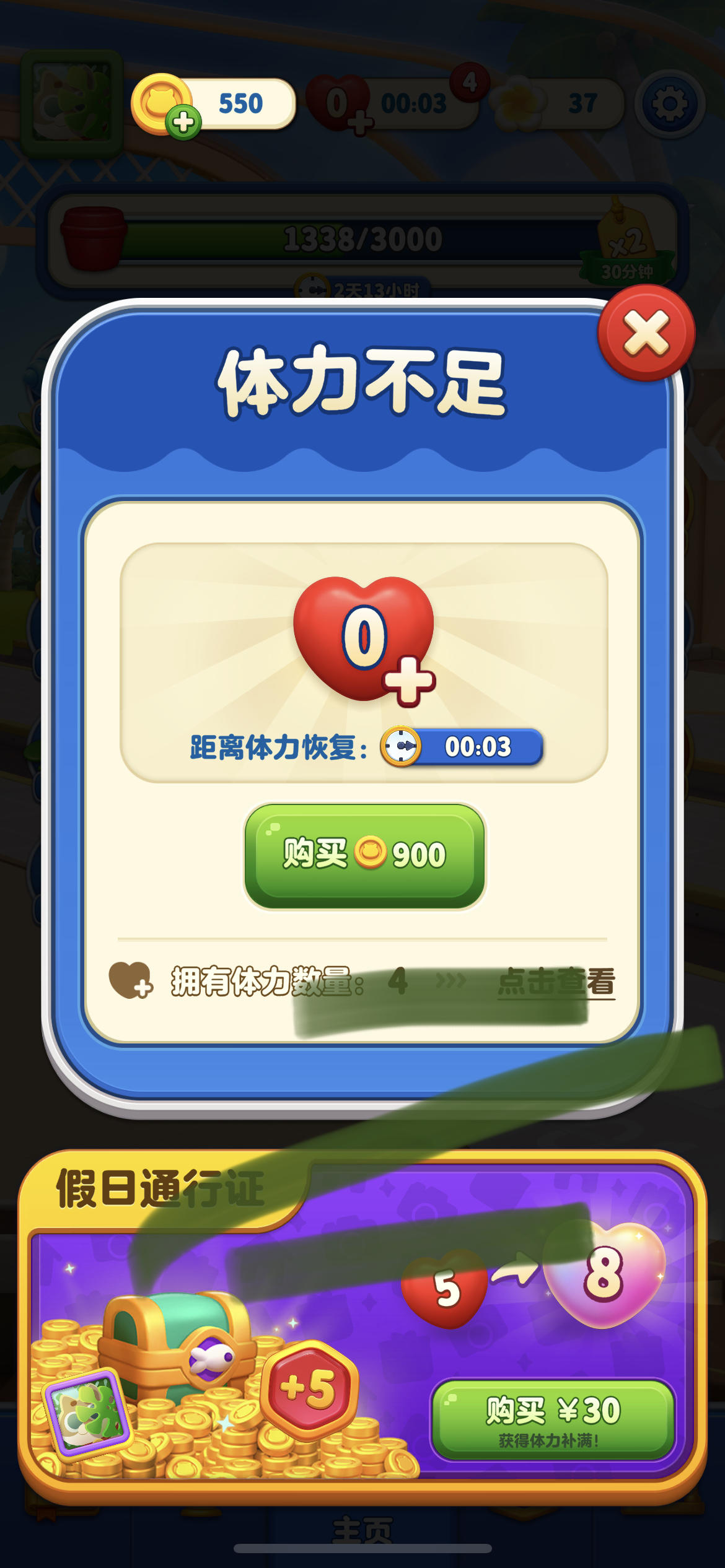 到恢复时间了,不恢复体力,点补充也不行… #假日乐消消