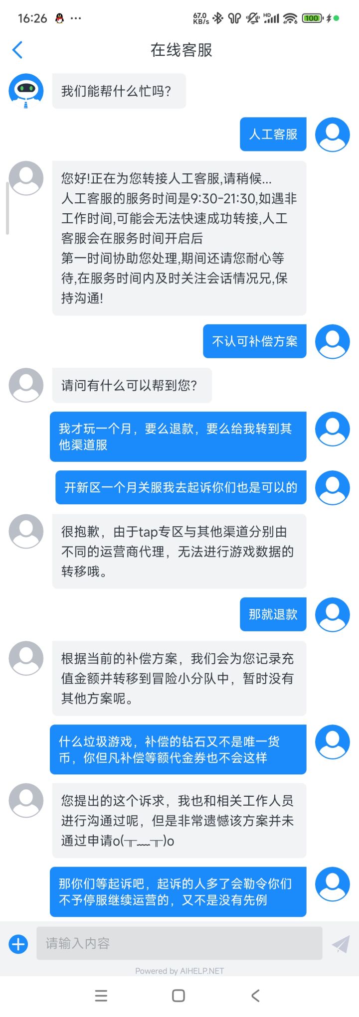 不认可这个停服补偿,补偿的东西在另一个游戏不值一提,强烈要求对近停服公告前三月内所有充值开放退款通道,不退款的改为贵司名下任意游戏等额代金券,呼吁大家起来保护自己的权益,实在不行就联名上诉,有过先例停服前捞了一笔然后说关服,被起诉后勒令不予停服继续运营的#停服#维护玩家权益