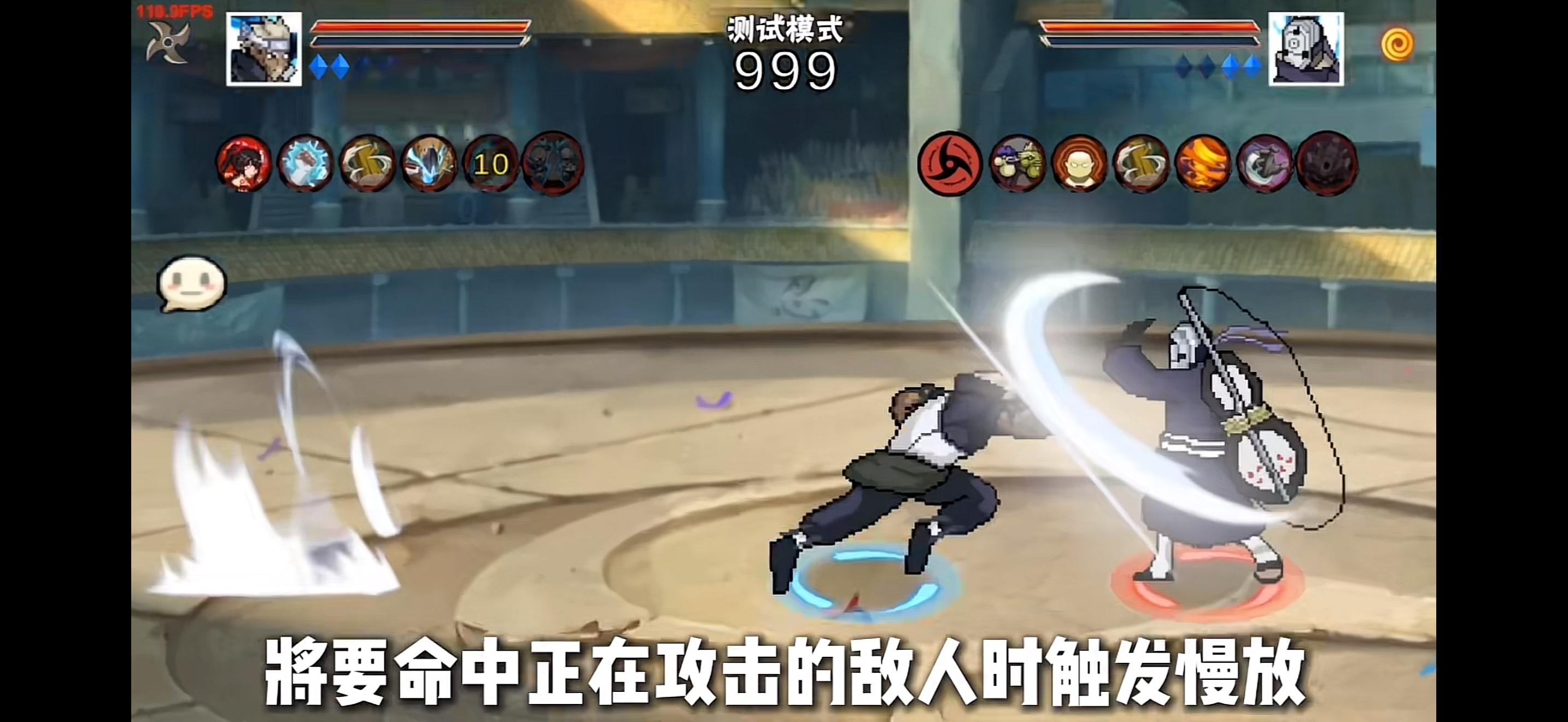 - 游戏风格:采用复古像素画风,将经典火影题材与像素风格创新性结合,既保留了像素游戏的怀旧感,又精准还原了火影角色与场景,风格独特。- 游戏玩法:涵盖单人演练、1v1对决、3v3团队战、无尽试炼等多种模式。玩家在对战前需选择忍者角色,并搭配秘卷和通灵术。战斗中,技能使用有冷却时间,命中敌人可累积奥义点,满值时可释放大招。此外,玩家还可点击替身按钮躲避攻击。- 游戏亮点:游戏的秘卷和通灵