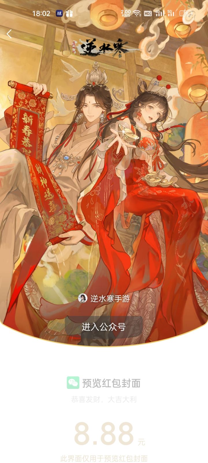 你们知道这个活动吗?我刚知道,哇,还好是永久的,换了一个逆水寒的红包封面真好看。#今天游戏圈发生了啥#游戏福利#元宵福利