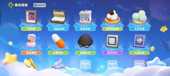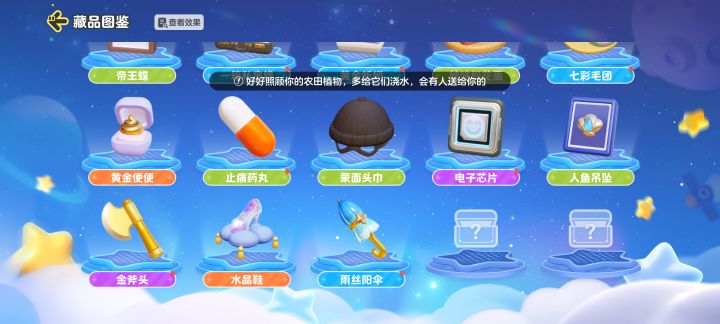 【大收藏家】星宝要炫耀的藏品是药丸和吊坠,一个是第一个得到的藏品一个是精灵送的第一个礼物,都有特别的意义的,还有好几个还没收集,加油收集起来!!#元梦农场藏品大赏