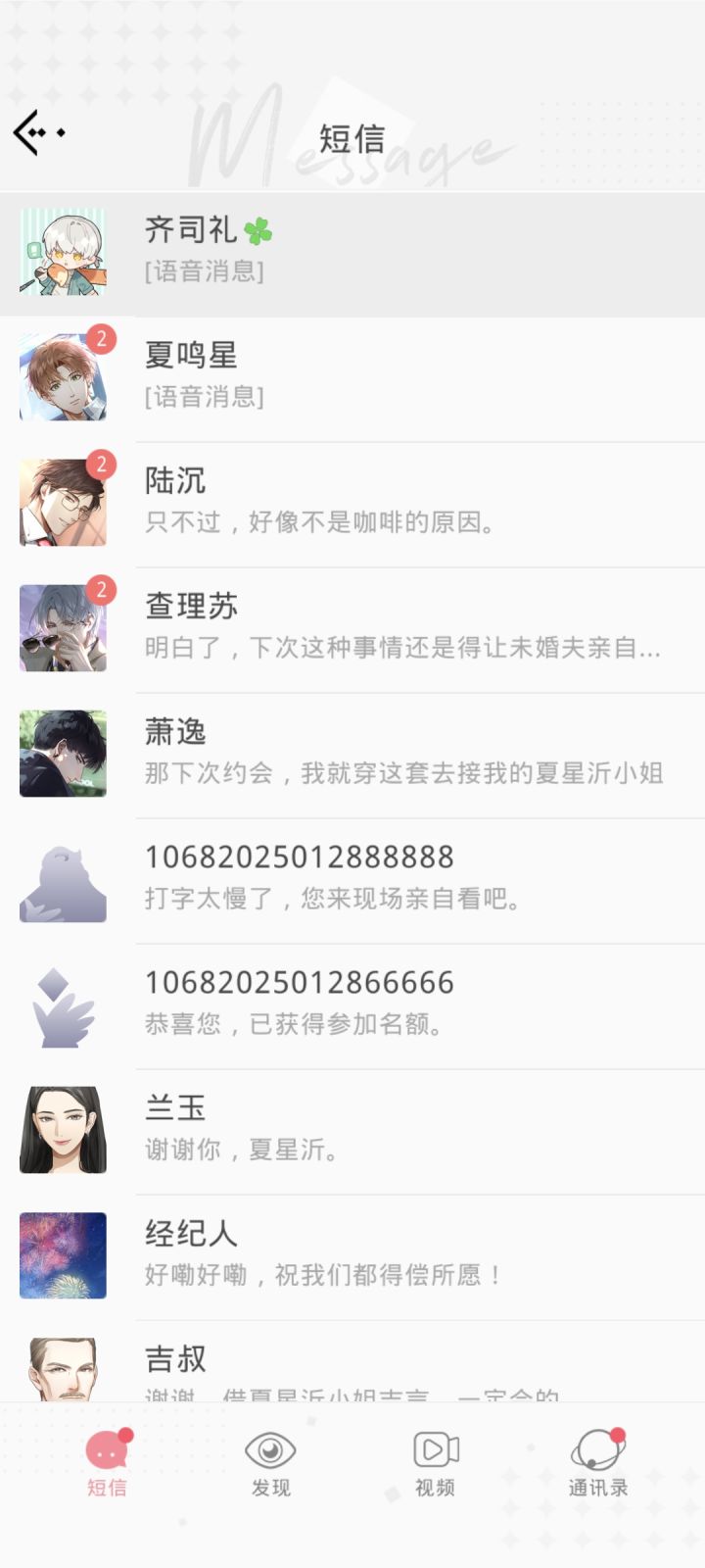 每到这个时候我都能体会到当海王的感觉,太多消息了,根本点不过来,除了自推我其他人的好感度还停留在去年过年的时候#光与夜之恋 #光与夜之恋游戏日常