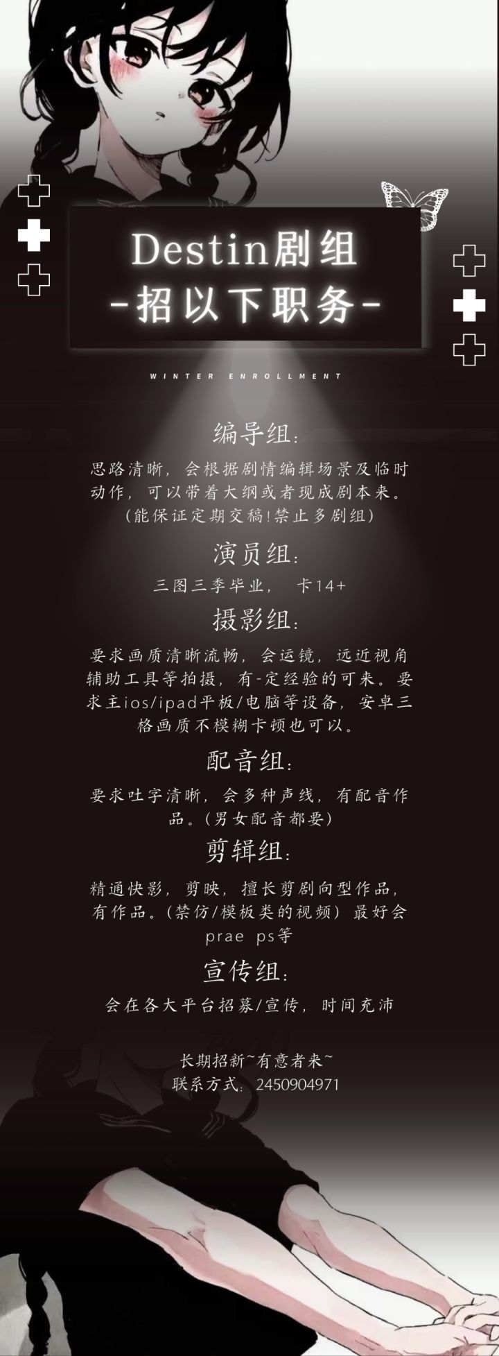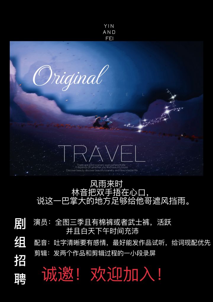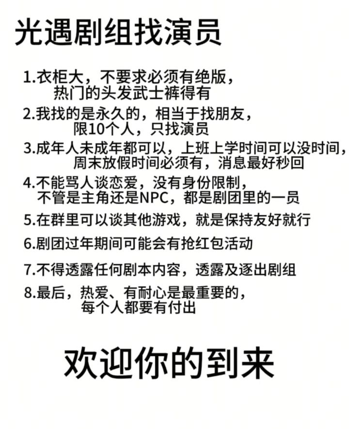 家人们,准备拍剧,现在剧本已经定了(不是原创但是已经经过老师的同意可以使用),开机定在1.21日,如果有意愿的宝子们可以提前来加入一下!欢迎欢迎!服装不强求,但是必须要有各大棉裤或者武士裤其中之一就行!谢谢宝贝们的支持✊!欢迎大家的加入!《原来》剧组期待你的加入(✧◡✧)#光遇#光遇剧组#sky光遇#光遇剧组招人