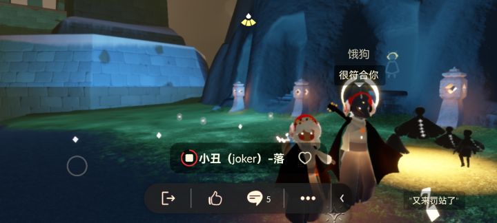 这是4.5在云野大厅遇到的一个鸟子姐(后来换了正太还有鸟子)当时在听好友(溪晴)弹琴,点火啵了一下就玩开了,后来鸟子姐生气了走了,我也不知道咋回事,我当时在回同学消息没看到(可能是鸟子姐破防了听桌上剩下的人说的)我是无翼!在后面4TW0-M9FS-N0T8#光遇捞人