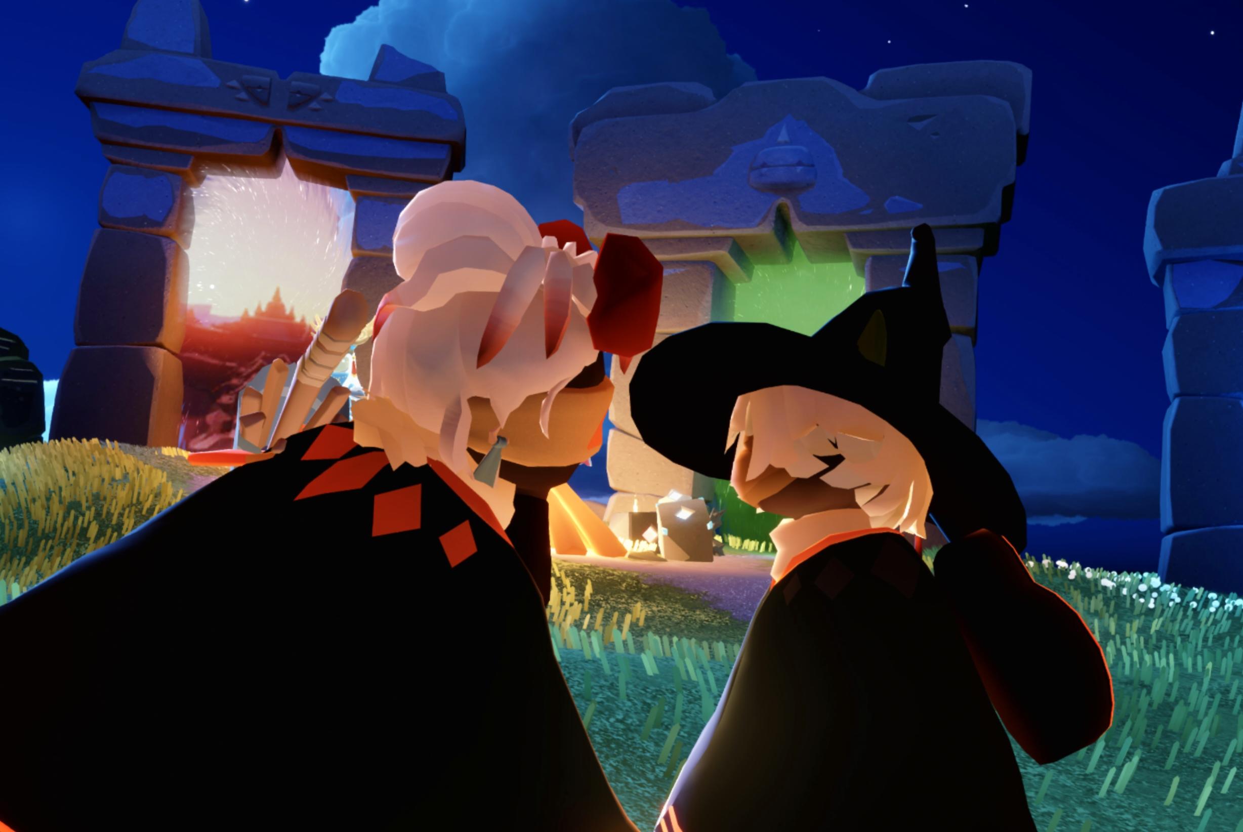 #光遇 #光遇跑图日常 在边陲荒漠门口看到正太和书虫一个追着跪,一个逃着拒绝,好奇有啥瓜就近距离观摩了一下,(顺便拍了这张对跪)不知道他俩说了啥,书虫突然跑来跪我,已吓跑,很好奇他俩在干啥