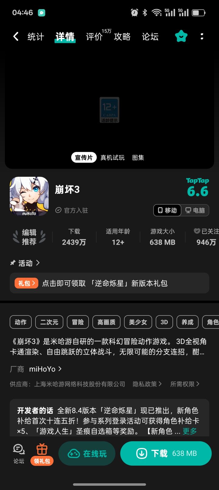 ,同时痛失的还有哔服的崩坏号里面有我肝了好久的彼岸双生皮肤当时的新角色
