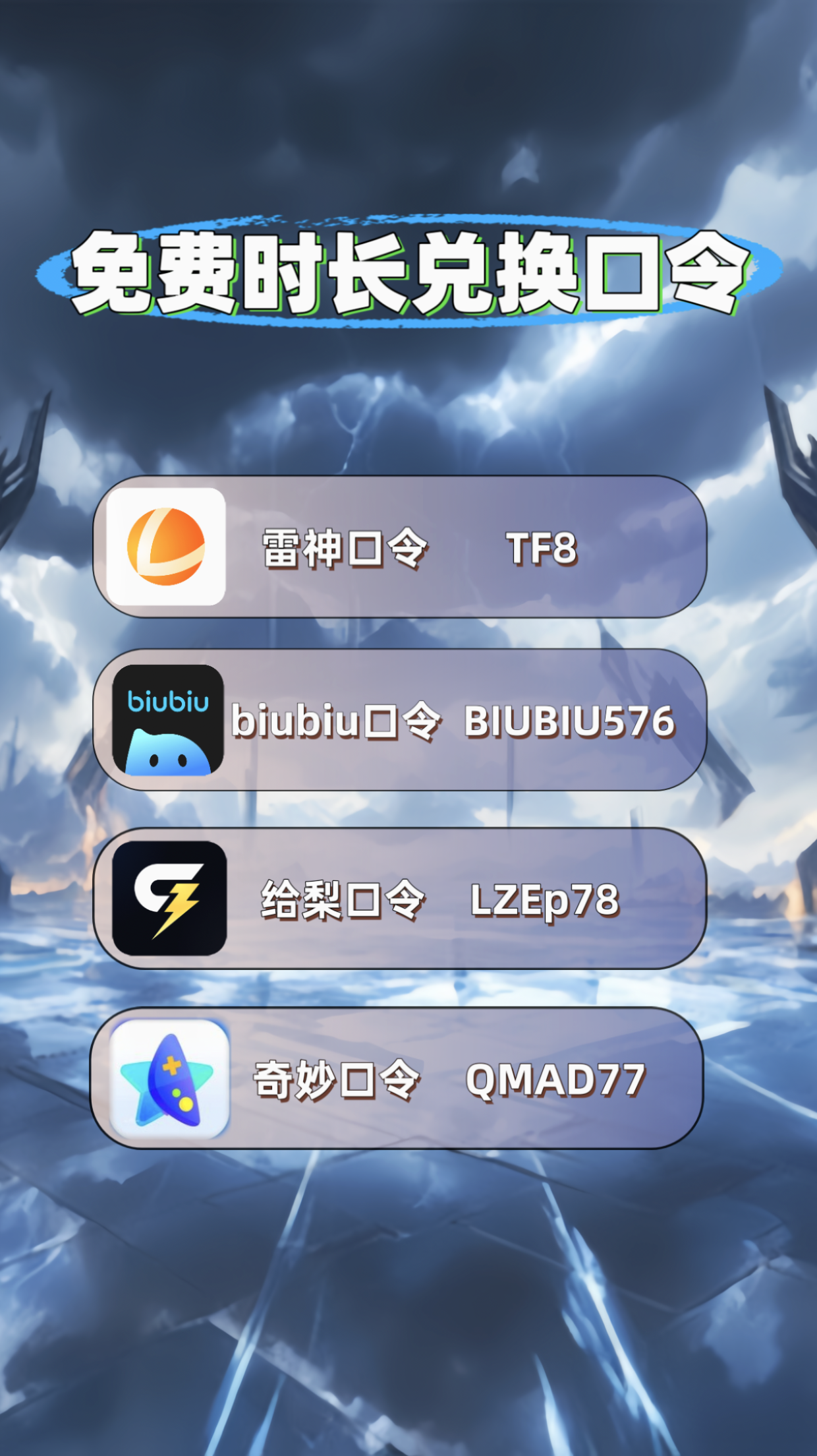 最新免费加速器口令兑换码!奇游加速器/UU加速/雷神天卡周卡月卡