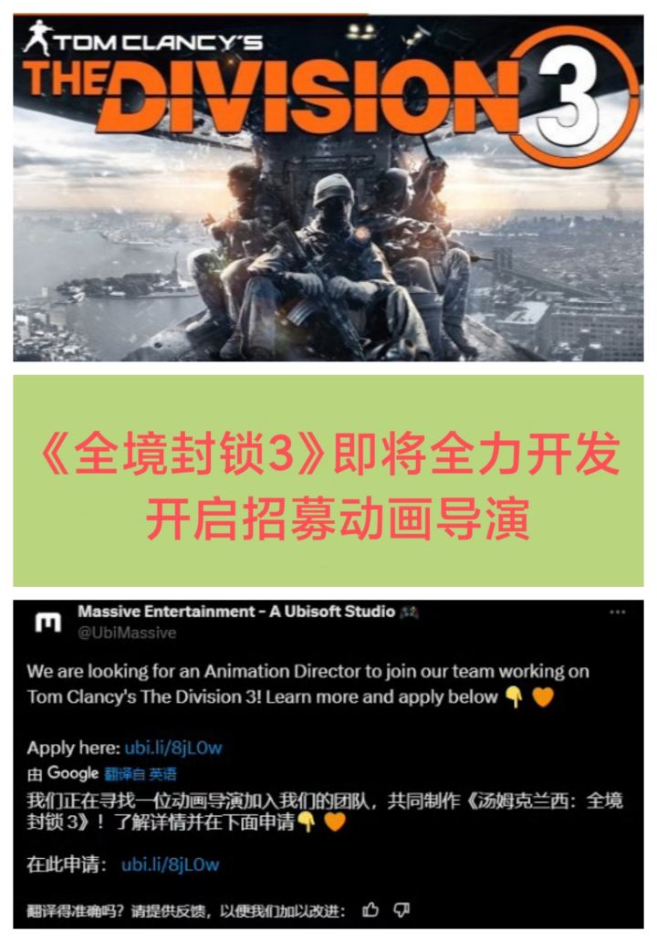 《全境封锁3》招动画导演❓即将全力开发🔥🔥🔥
