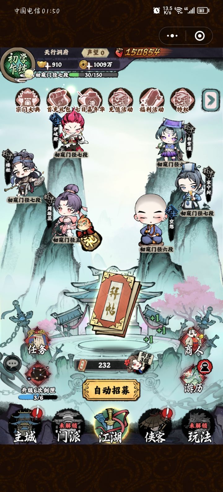 这游戏氪佬可以玩,平民也可以玩。活动丰富多彩,福利多多,可以养成,每天十几分钟不废太多时间也可以很牛。#全民武馆