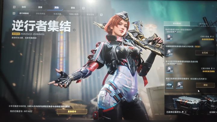 我的召集密令:IKFA62在活动页面右下角绑定密令可获得3个箱子(紫金随机枪或其他道具)#逆战未来 #全网寻找逆战老兵 #兑换码