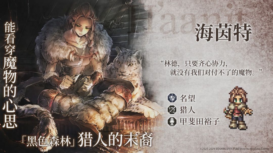作为「黑色森林」猎人的末裔,海茵特能看穿魔物的心思。 虽然还不成熟,但海茵特坚信着只要和雪豹林德齐心协力,就能消灭一切魔物。 —————————— “被选中的旅人”5★猎人“海茵特”今日上线!戳下方链接立即下载↓↓↓ https://www.taptap.cn/app/548892 #八方旅人 #八方旅人手游公测 #歧路旅人 #歧路旅人大陆的霸者 #邂逅八方的旅人 #手机游戏 #海茵特 #旅人