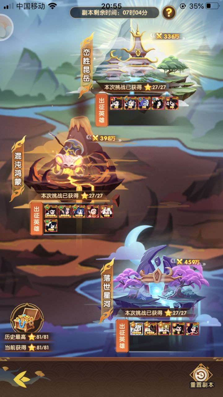 我是渠道服的,玩了很久,不要在意英雄星数,以及豹子的不同,可以看我操作的方式,是如何打的?打八景并不是一成不变的,而是随机应变,不行咱们就换法宝换英雄换阵容换思路,只要思想不滑坡,办法总比困难多。 下面讲的,你可以模仿,但是如果没有我这条件的话,你就要思考了。 第一关最强战斗力,我采用的是双群嘲,由于我金灵才神话,我就没用,我用的是策划和帝辛,一般情况下我没有策划的话,是金灵和帝辛前排,想控制对方