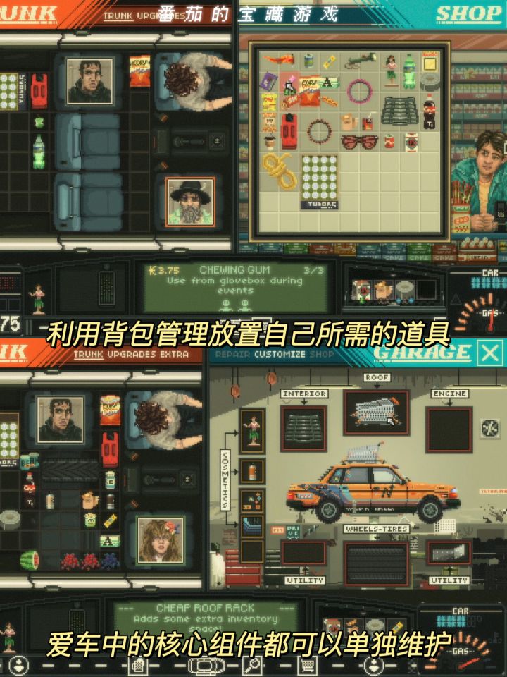 怀旧风公路旅行,像素风背包管理RPG