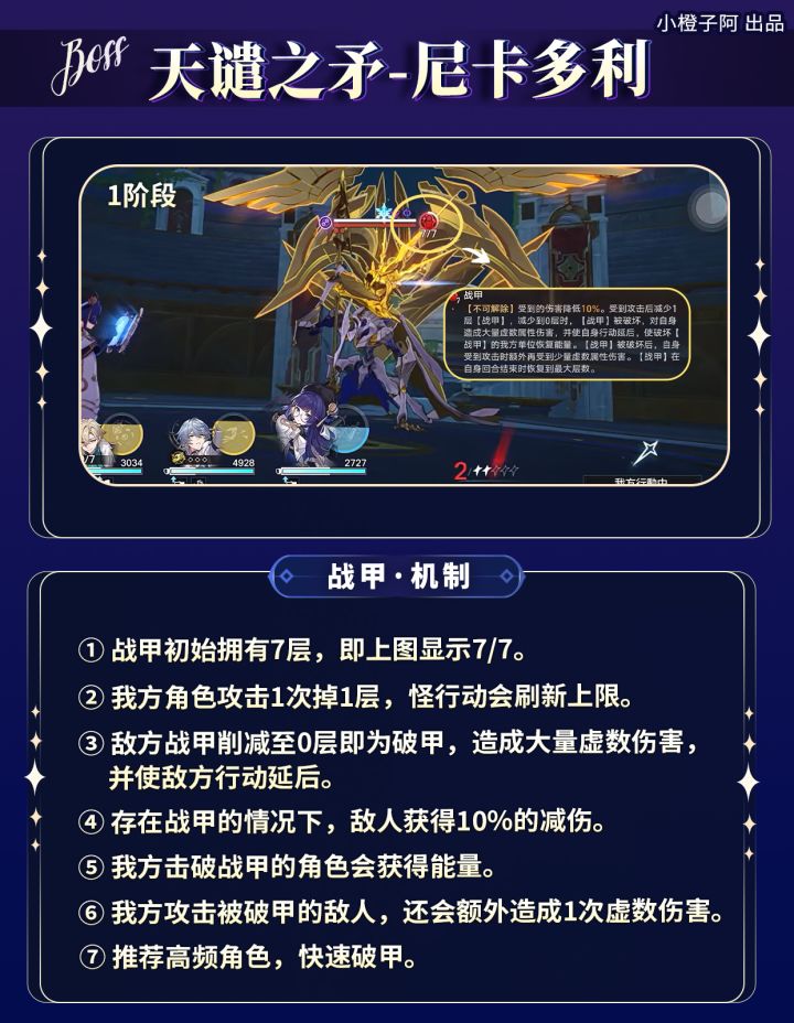 UID:104802274 哈喽喽,这里是小橙子阿这次给各位带来了3.0新boss天谴之矛的机制解析以及一些队伍搭配,现在小伙伴只能在剧情体验到boss对战,想必再过几天就可以在忘却等场景体验到boss啦,不妨在这段时间了解一下boss机制,知己知彼百战不殆嘛~ 一些不错的配队放在了最后一页,小伙伴们可以根据自身box灵活调整。#崩坏星穹铁道攻略 #崩坏星穹铁道创作者激励计划 #游戏种草计