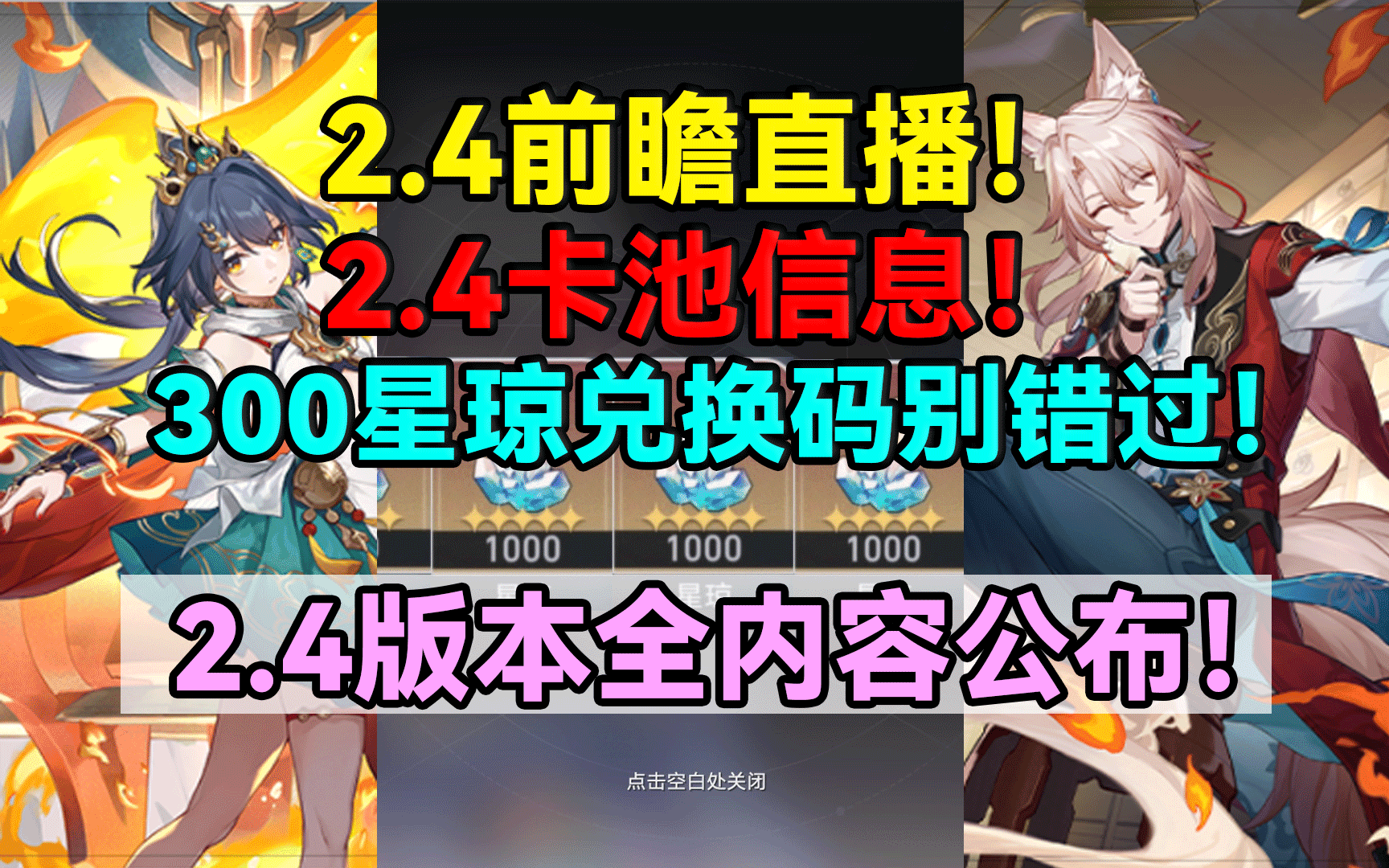 2.4前瞻直播!2.4卡池信息!300星琼兑换码!2.4版本全部内容公布