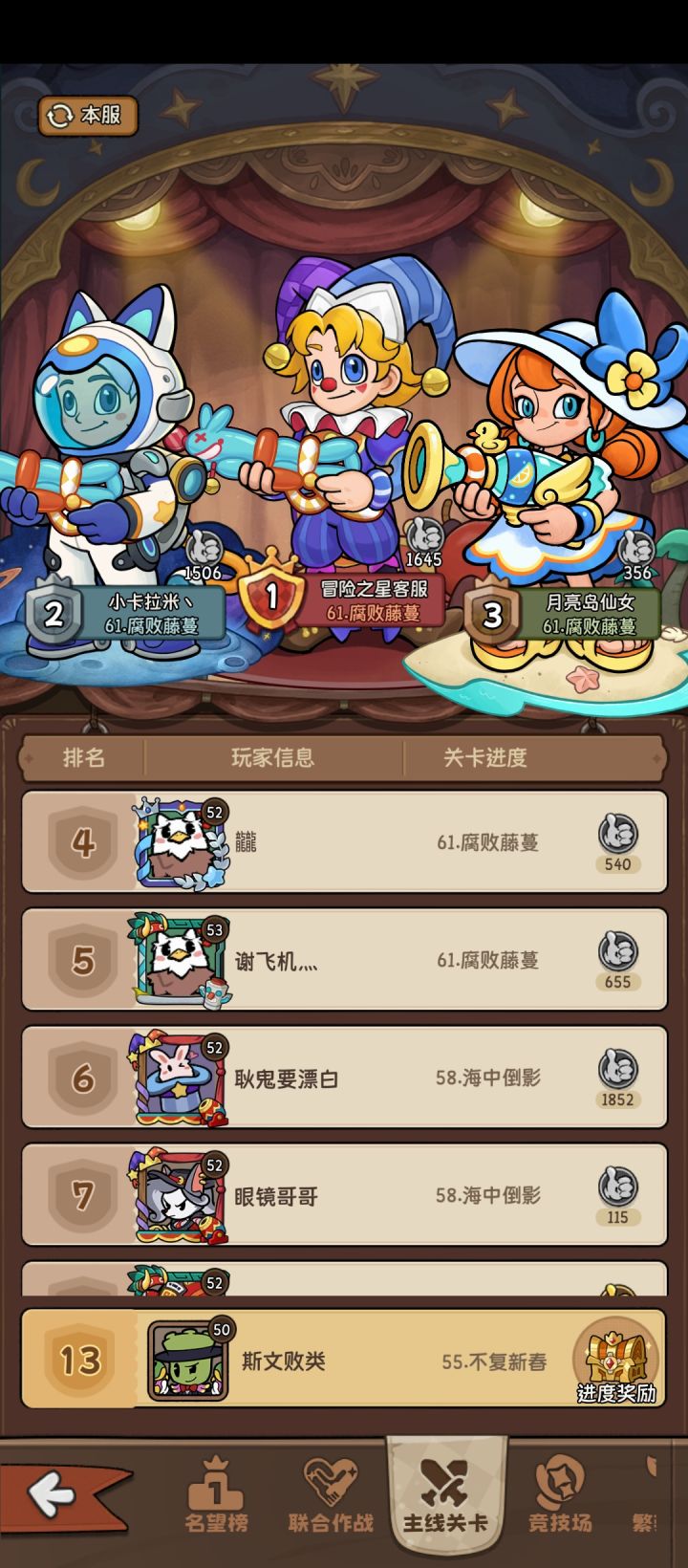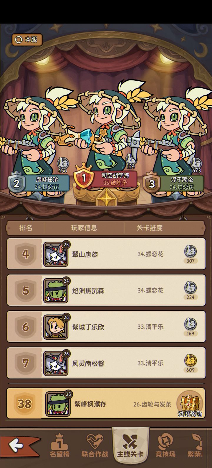 开服第四天屯资源版关卡竞赛结榜最后一天,20后面打一关都得靠运气,前5回合没紫没金都打不动,打到27就是极限了英雄等级榜就更不用说了,百名开外了前前后后差不多氪了有500米#游戏日常 #冒险之星手游