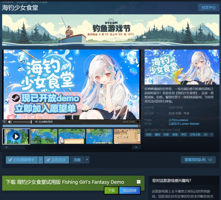 Steam:https://store.steampowered.com/app/3767470/_/ 玩家交流Q群:719703600 欢迎下载试玩!❤ #steam游戏 #休闲游戏 #冒险rpg #单机游戏 #开发日志 #模拟经营 #海钓少女食堂 #游戏推荐 #钓鱼游戏 #云光社Lumenex #