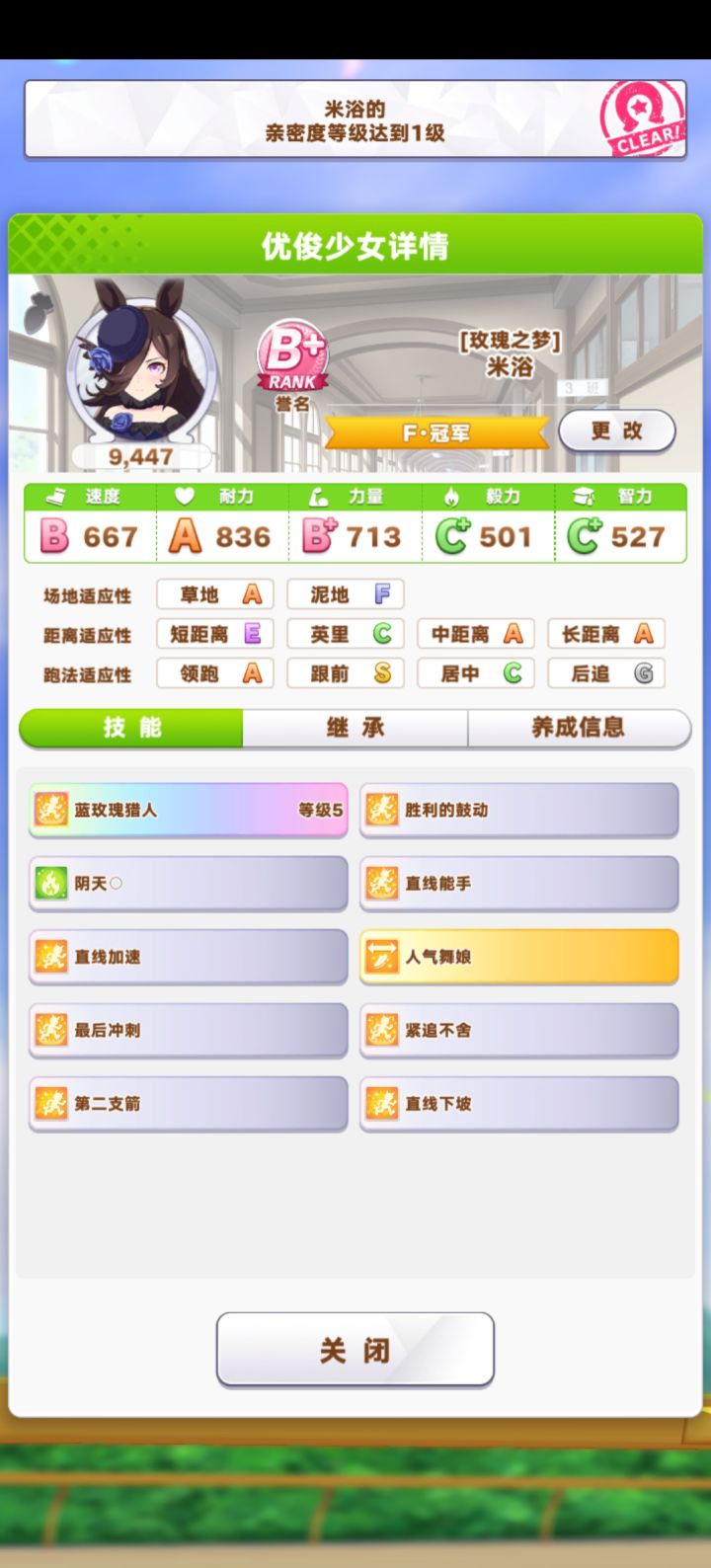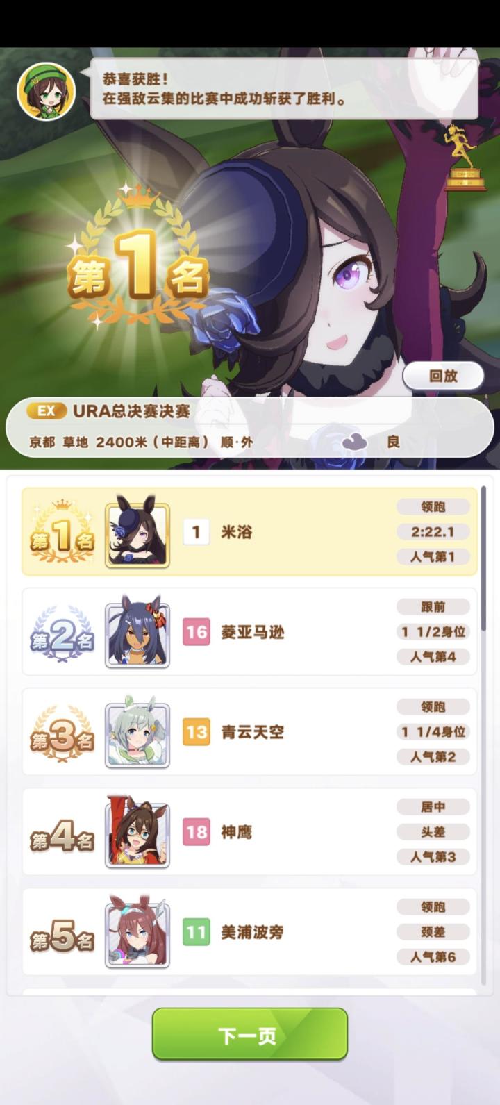 是命中注定的缘分 提前去台服练习,做新手任务送的随机马娘给了米浴 含嘴里怕化了,听说特别难养,很容易掉心情 属性全面发展,稳定休息不敢冒险一点 没辜负我,靠自己拿下了连霸 来的很突然,结局很圆满#冠军米浴