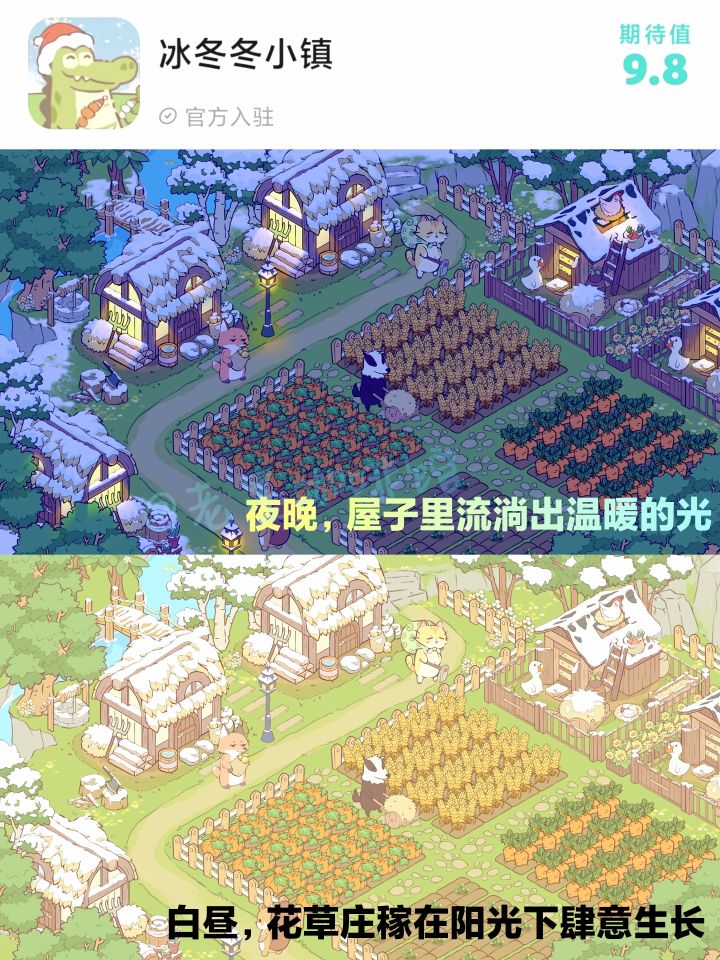 游戏类型:模拟经营、治愈、种田、美食、休闲游戏介绍:《冰冬冬小镇》是一款将动物美食经营与小镇建造完美结合的冰雪末日生存游戏。在这个冰天雪地的永冬世界里,你将化身为勇敢乐观的小熊猫,作为冬冬小镇的幸存者,点燃熔炉,驱散寒冷,与极寒对抗。你将在这里开拓田地和养殖场,抵御漫长的寒冬和突如其来的暴风雪。感兴趣的小伙伴可以点击评论区上方游戏链接的【预约】按钮,预约