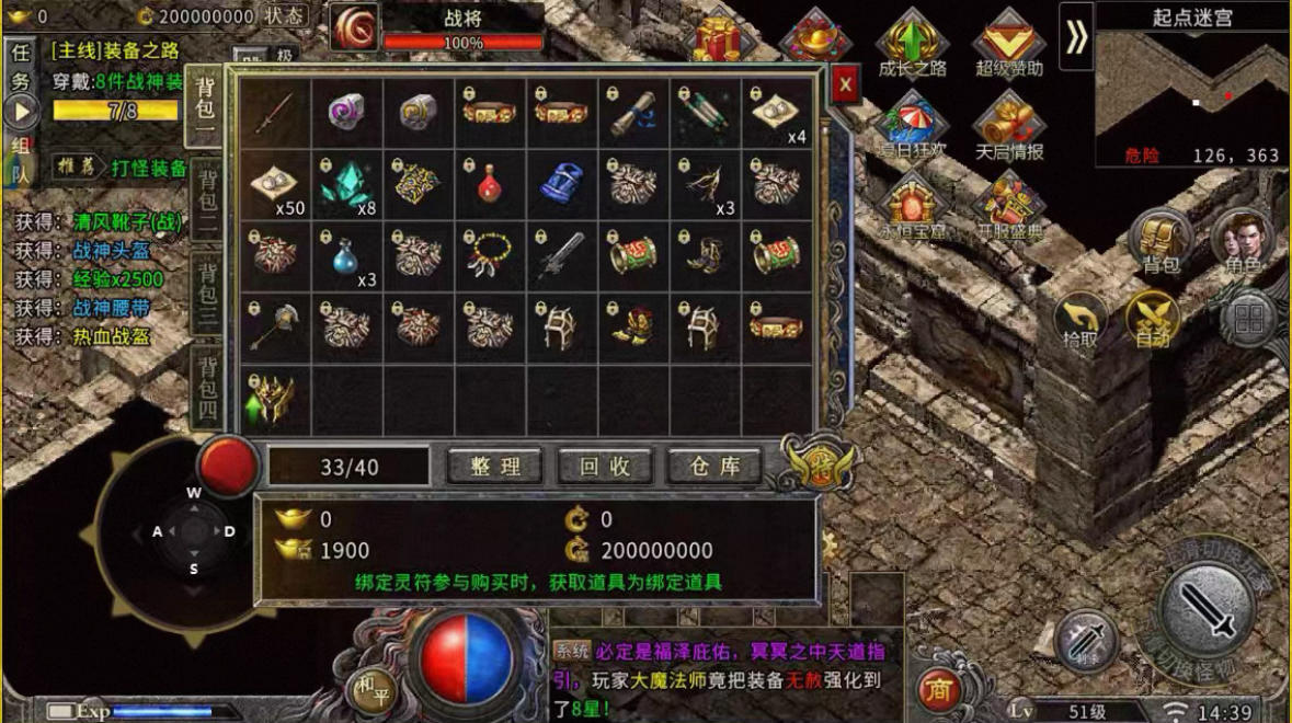 冰雪传奇手游【龙城秘境-重返冰雪2019】经典单职业战士服,【新区有活动!详情看图三】怀旧爆率拉满,纯靠打怪,装备全靠打,公平无套路,老玩家们快来体检吧~全服无限悬赏回收,一转装备起就能参与,装备保值无忧,材料全靠打怪掉落,首饰3合1、武器10合1,等级越高福利越丰富,斗笠、盾牌、宝珠特殊装备,品级越高属性越强,战力稳步提升。沙巴克城战焕新,获胜方限时城主称号+专属时装+成员称号,全阵营7天属