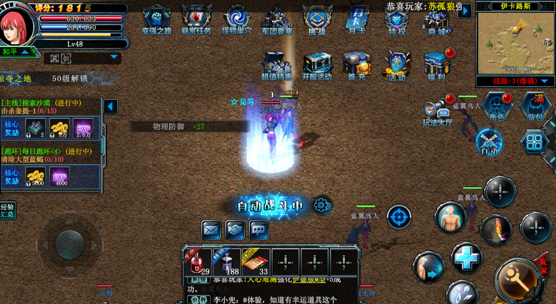 想在开服初期快人一步?掌握以下要点,轻松实现等级飞跃: 1. 职业选择是基础 · 法师/魔法师:范围伤害高,清怪效率首选。 · 格斗师/拳师:血厚防高,容错率高,适合新手。 2. 任务节奏是关键 · 1-30级:死磕主线任务。 · 30级后:每日悬赏任务优先级最高。 · 40级后:跑环任务奖励丰厚,必做。 3. 资源规划是精髓 · 精力值:每日免费领,开启后刷怪经验加成。 · 体力: