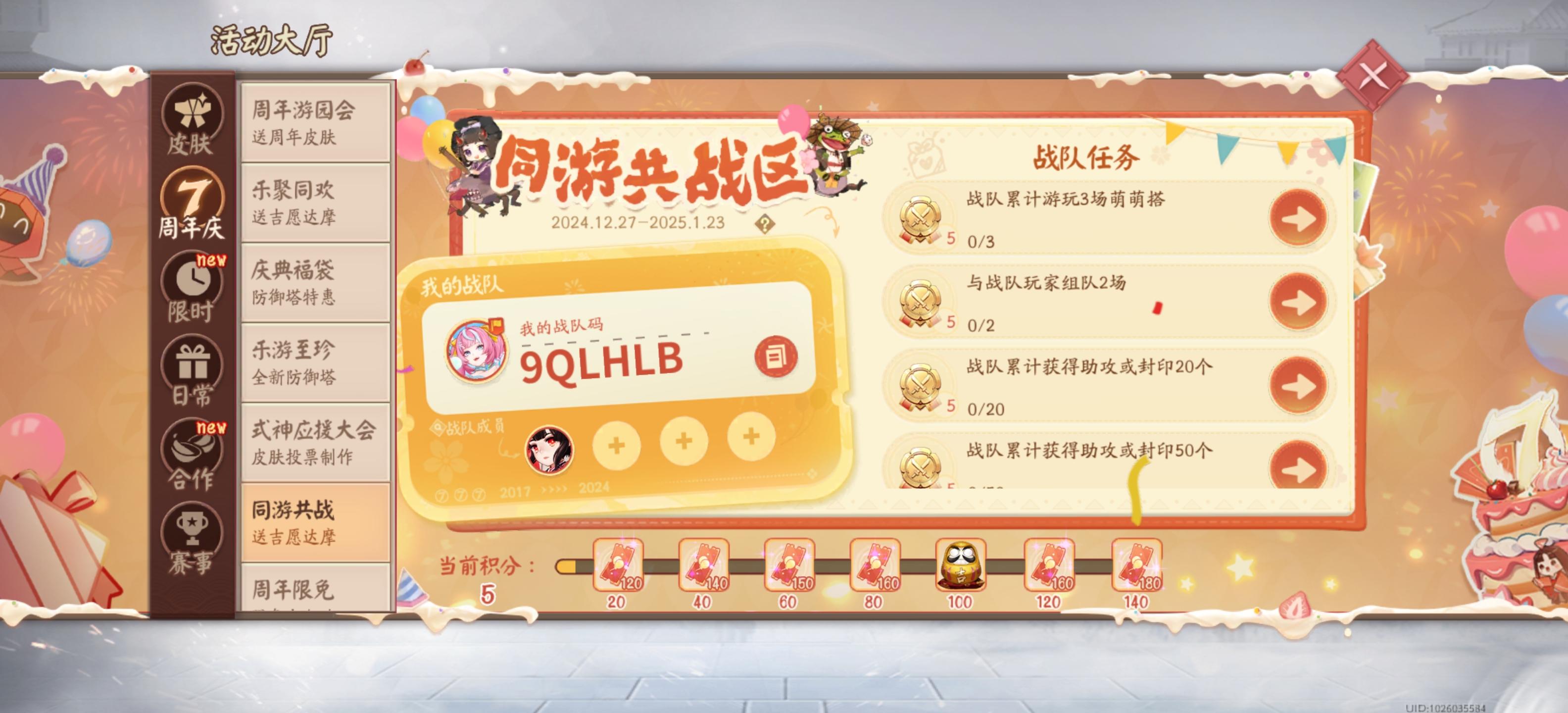 【决战平安京】复制我的战队邀请码9QLHLB,和我一起拿吉愿达摩、游园券奖励吧~#决战平安京 #决战平安京七周年