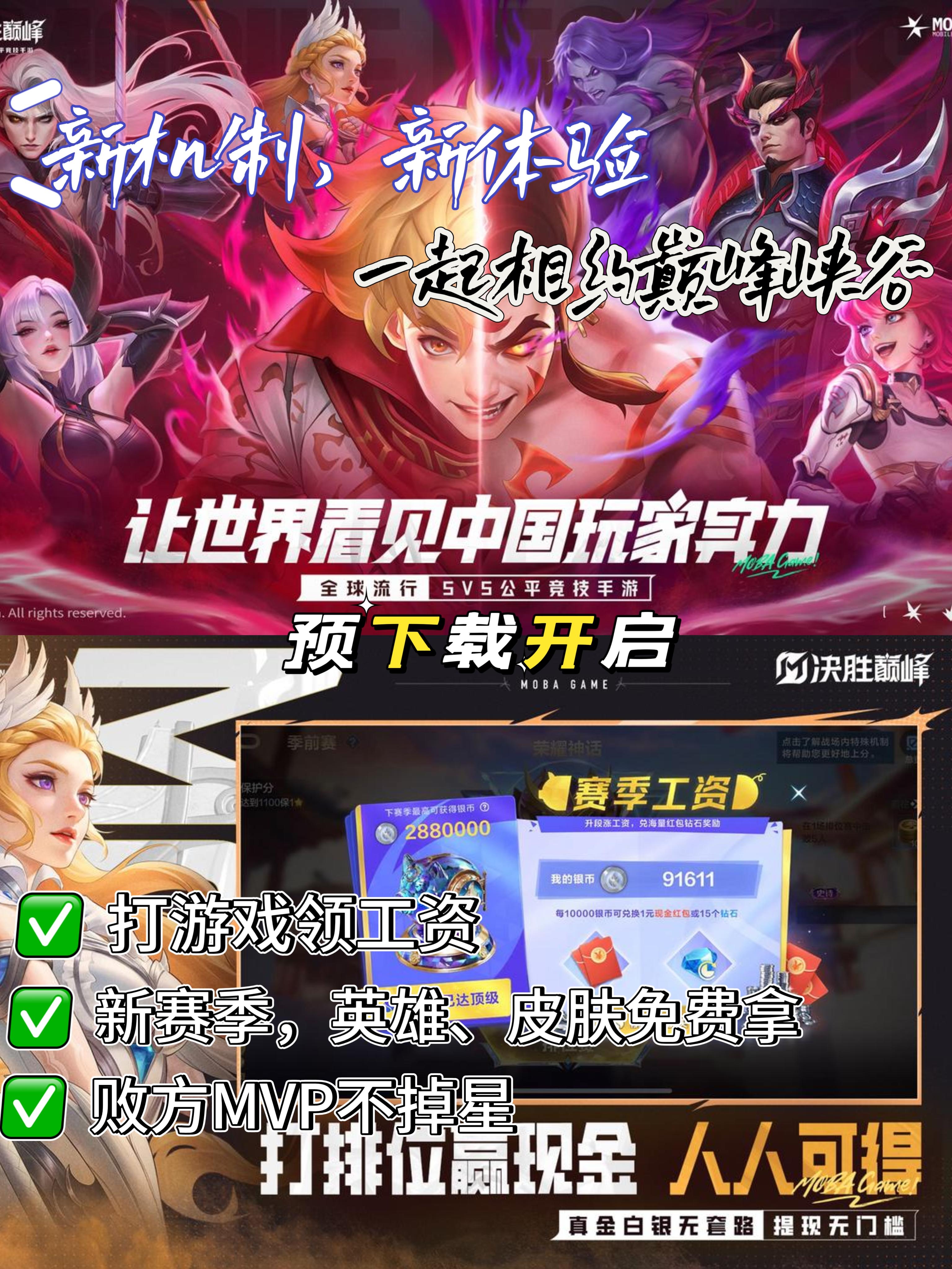 🎮游戏:决胜巅峰 🕹类型:MOBA |5V5公平竞技————风靡全球8年,覆盖全球219个国家和地区,全球注册用户累计突破15亿,移动电竞赛事观看人数连续三年全球领先,多次荣获“全球最佳移动电竞”等奖项。———— 《决胜巅峰》国服下载开启: ✨打游戏,领工资 ✨首赛季全英雄全皮肤免费获取。✨首创!败方MVP不掉星✨SNK联动开启 ❗️ 感兴趣的朋友,点击下方即可下载 !👇🏻👇🏻👇🏻