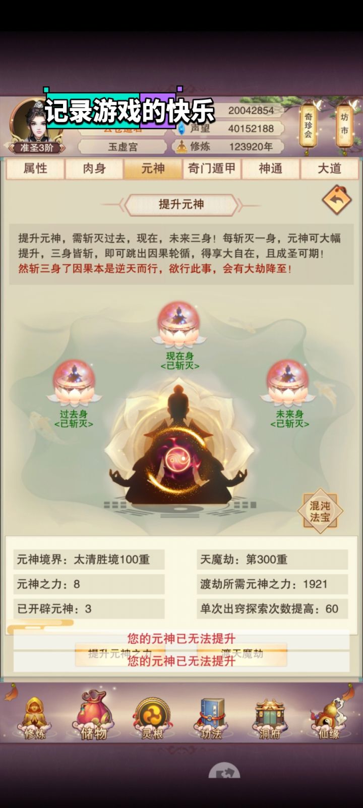 #冷门开箱 12.3万年的真绝号也300元神了,应该是拖真绝号后腿了吧这个年龄才刚刚300元神,之后每天都可以节约出来200功德了#今天游戏圈发生了啥 #发现好游戏 #想不想修真 #想不想修真攻略 #想不想修真日常 #浅评一下 #游戏日常 #想不想修真真好