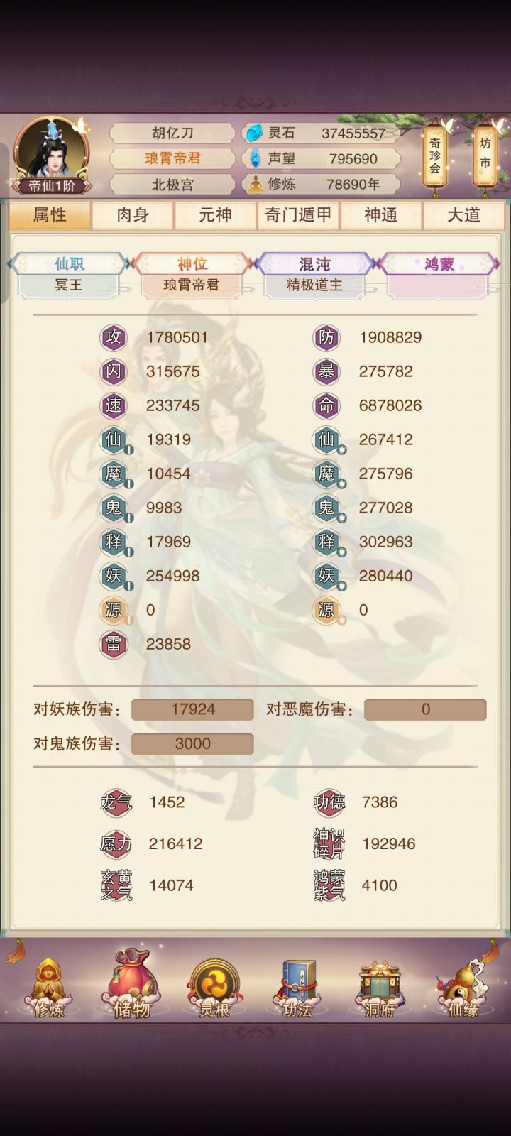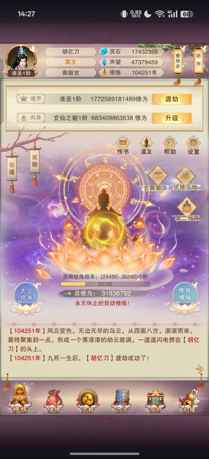 历尽万千劫,入三十三天,升入神界,下混沌海,进鸿蒙。执掌冥王、帝君、道主、本源道尊位。历人间道、饿鬼道;证道五行、造化、轮回;入圣台,对弈天道。#准圣