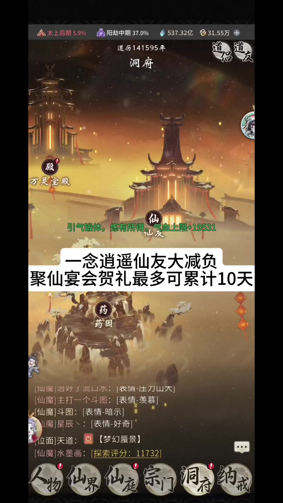 一念逍遥仙友大减负,聚仙宴会贺礼最多可累计10天