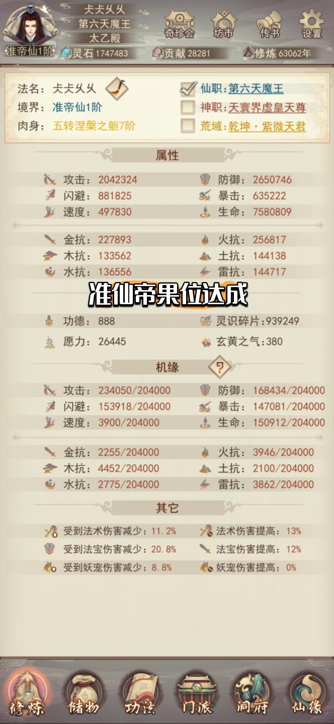 总算下海了, 晚了许多,具体为什么呢? ⊙ω⊙,大家看第二张图,应该就知道了,本来没准备点太多,然后网一卡手一抖,就直接八重了。 然后就是升九到十,劈了我好几次,不然的话四千年以内还是能做到的。 整体来说进了不少坑,不过能在这个年份洞真,也还算是可喜可贺,可喜可贺。 整体来说,大乘一天一级有点难度了,如果不是秘诀流的话可能会花费更多时间。 目前还是差了个界主,如果有界主的修速加成,一天一级还是能做