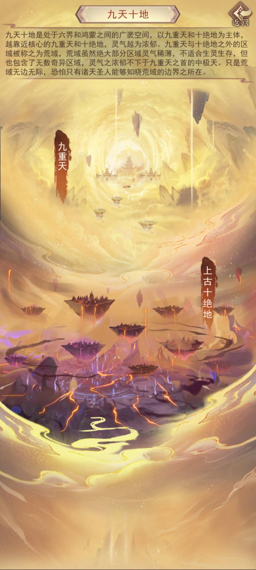 本攻略主要面向新手萌新了解一下,简单说一下神界地图吧。 九天十地分为九重天(神界)和上古十绝地 上古十绝地目前只有六个:剑域(玄仙),祖龙山(仙君),凤凰巢(仙君),麒麟洞(仙君),天墓(玄仙),上古劫地(仙尊) 神界主要分为9个大地图,每一个大地图又分为10个小界,每一个小界分为14块地格。 这里以第1个小界-丹云界作为讲解,后续所有的小界的每一个地格名字相同,只是属性高低多少的问题。 ①天同域