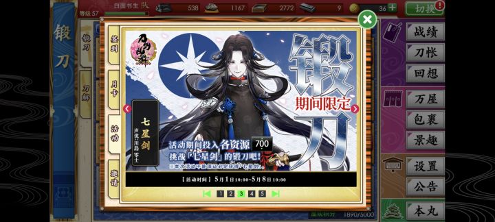 极化了三日月,忘记截图了wwww,各位有没有锻小狐丸出刀概率高的公式,求!!꒦ິ^꒦ິ#刀剑乱舞online#刀剑乱舞手游#刀剑乱舞