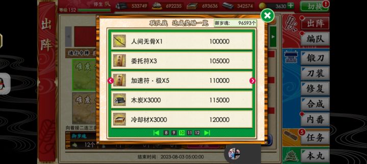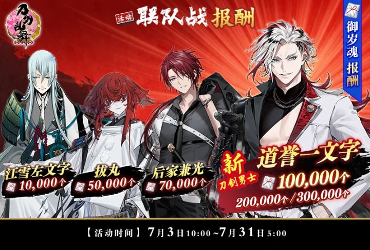 分为10万,20万和30万档。29天每天的目标。#刀剑乱舞联队战
