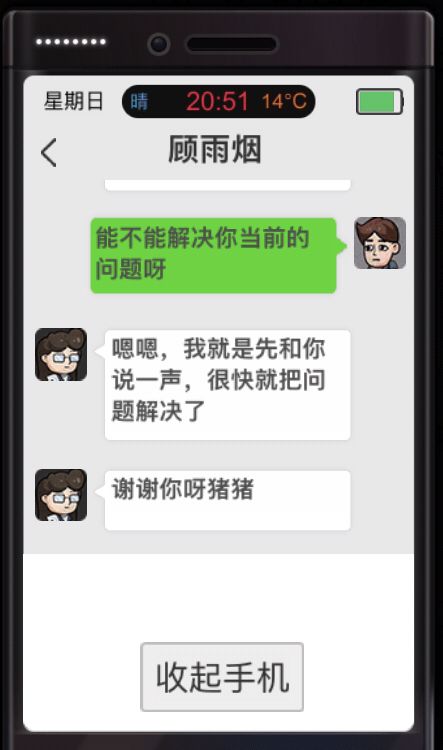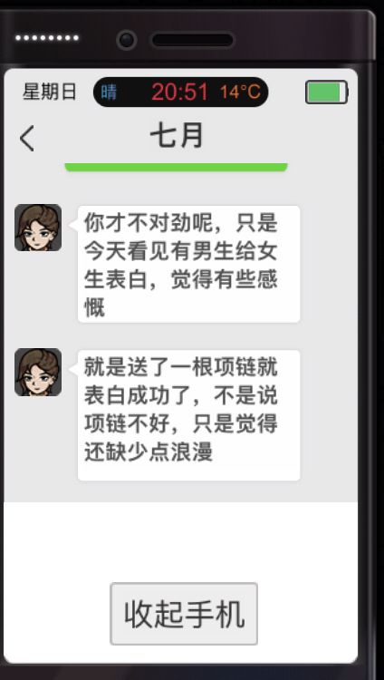 游戏名:刚分手的24小时平台:iOS 安卓这是一款非常写实的单机小游戏。玩家需要帮助一个刚刚分手的男人,努力度过他刚分手的24个小时。如果能忍住不打电话给前女友就算游戏挑战成功。校园恋爱的开始是多么的美好,分手时就有多么狼狈不堪,吃饭会想到她,看电影时想到她理。看书时想到她,打游戏的时候,也想着她,仿佛空气里都是她曾经留下的痕迹,深呼吸一口,鼻腔里弥漫的都是她的味道…游戏会有多种结