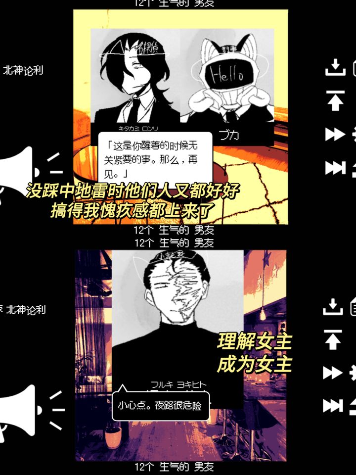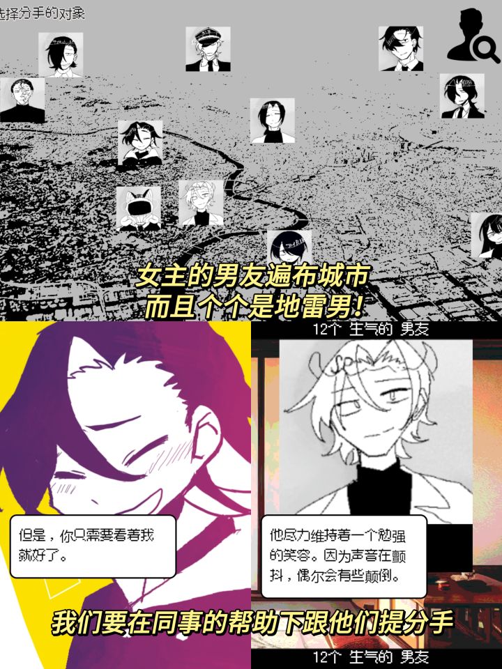 游戏:十二股全部フる平台:NovelGameCollection 女主因为过于博爱,不知不觉谈了十二个地雷男友,为了避免东窗事发被沉到东京湾,于是开始逐个提分手…… 刺激的分手大戏就开始啦!开心 游戏里我们可以采取不同的策略进行分手,撒娇,耍赖,命令……甚至是摇一个男朋友去跟另一个男朋友战斗(不愧是你!女主) 因为男友们的地雷属性,很容易就陷入危机,所以分手务必要小