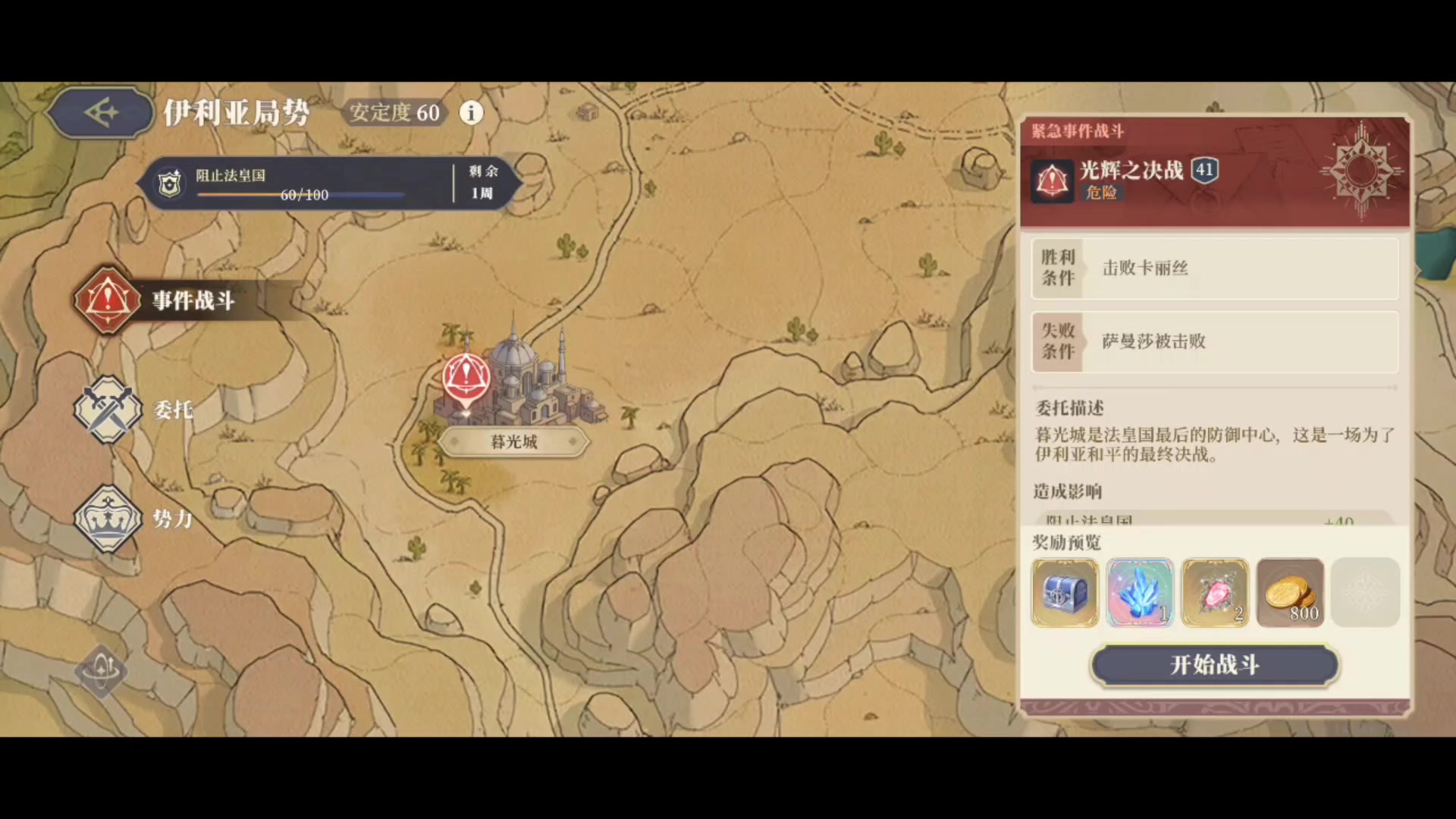 44周不杀民兵、剧情选项不认同法皇国的做法就能进好结局。 这关也是非常非常卡,6 打 30。光是做 50 周和这周的紧急任务都能超额完成击杀 60 名法皇国士兵的成就[表情_吃瓜] #铃兰之剑 #命运的螺旋 #萨曼莎 #卡丽丝 #列奥尼德