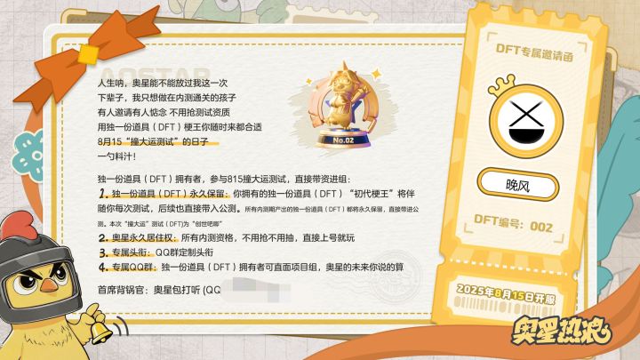 游戏真的很的好玩,画质精细,建模也不错,偶尔还能发现一些有趣的小bug。在内测时我有偷偷跟好友们在奥星开黑。虽然初代梗王已经不能再获取了,但不知道下一个二代梗王会不会是你们。8月15日奥星会开启“撞大运测试”,我会在奥星等着各位朋友们,期待与你们见面的一天XDPS:梗王会有很多奥星权益哦。#奥星热浪 #初代梗王
