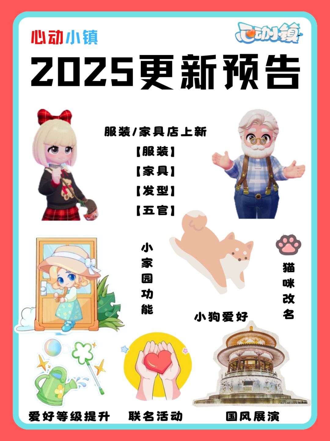 1.新服装/家具/发型/五官 2.全新潮流季 3.国风系列金橡果展演 4.宛平南路600号联动 5.爱好等级提升 6.小家园功能 7.养狗爱好 8.背包优化 9.蓝图旋转 10.猫咪改名 11.好友等级拓展 以上内容来自于官方未来工作优化方案,实际以上线内容为准哦~ #心动小镇 #心动小镇创作计划 #初雪邂逅心动小镇