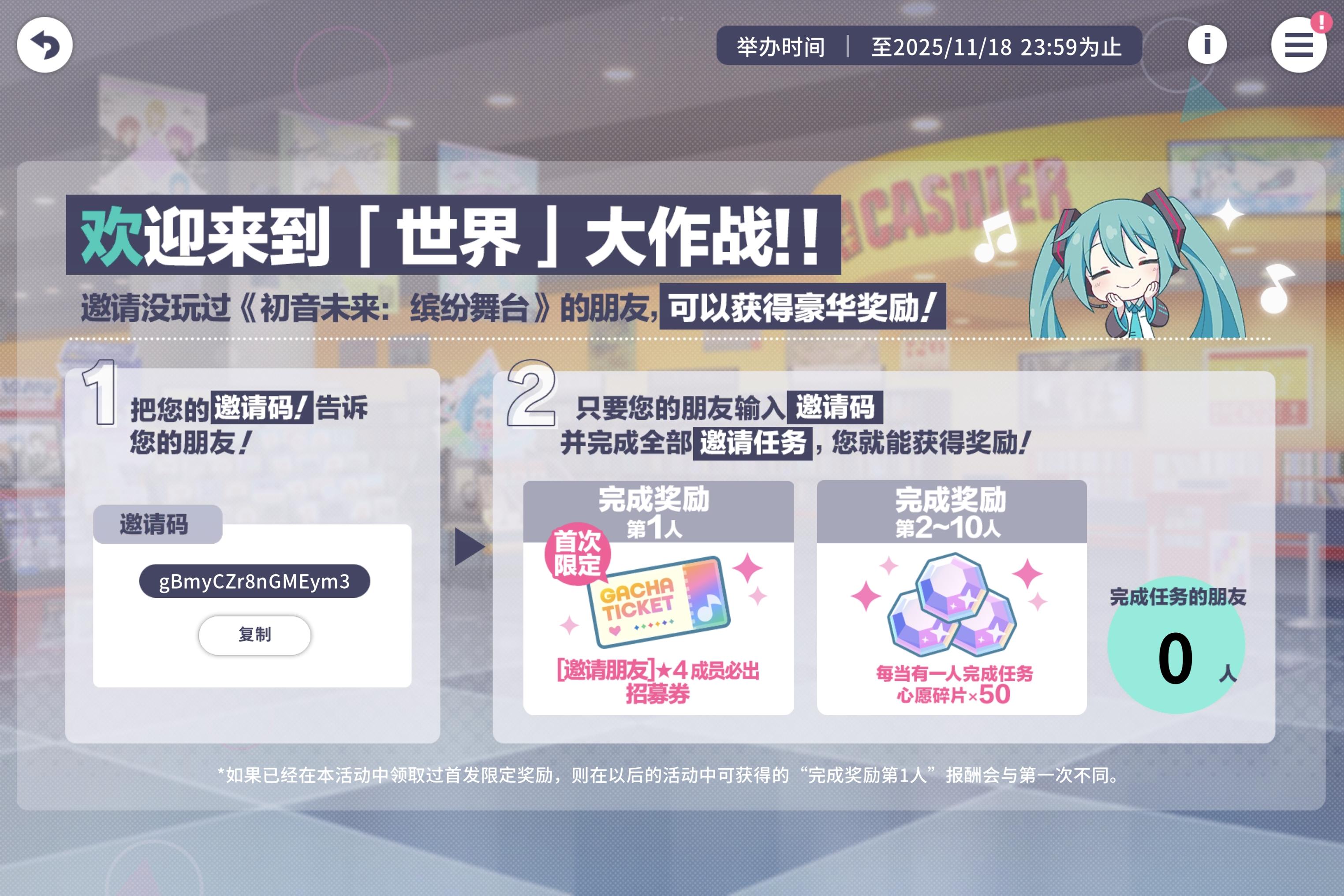 萌新宝贝求求了帮帮忙谢谢谢谢(ˊ˘ˋ*)♡ 邀请码gBmyCZr8nGMEym3帮帮忙谢谢#游戏日常 #发现好游戏 #初音未来缤纷舞台 #初音未来缤纷舞台世界大作战