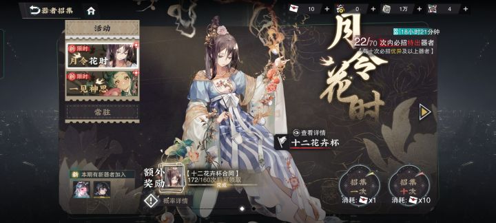 金杯池子,我当时积分剩了1380,然后阵容里面只有金杯可用,没其他轻锐,然后这个池子我本来说抽170抽,不换井,留着积分然后三千积分在商店换个四龙,当时龙凤还没打,然后想着换个四龙可能好点。结果这个池子170抽,抽出了一个越王,商鞅大帝,三命的洛神,然后随便什么关卡都打穿了,看着172的井我不知道咋整了。感觉十二花卉杯我又不是很需要,如果换成积分,现在我三大轻锐都拉满了,感觉四龙也不需要了,现在纠