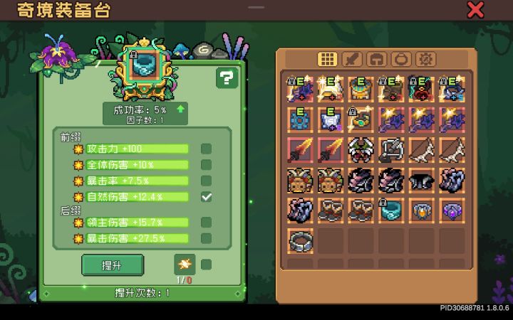 终于刷出终于刷出三个奇境装备台了,可惜只能锁定两个,要是能锁定三个的话,应该第四个也能刷出来。#元气骑士前传 #刷挑战因子