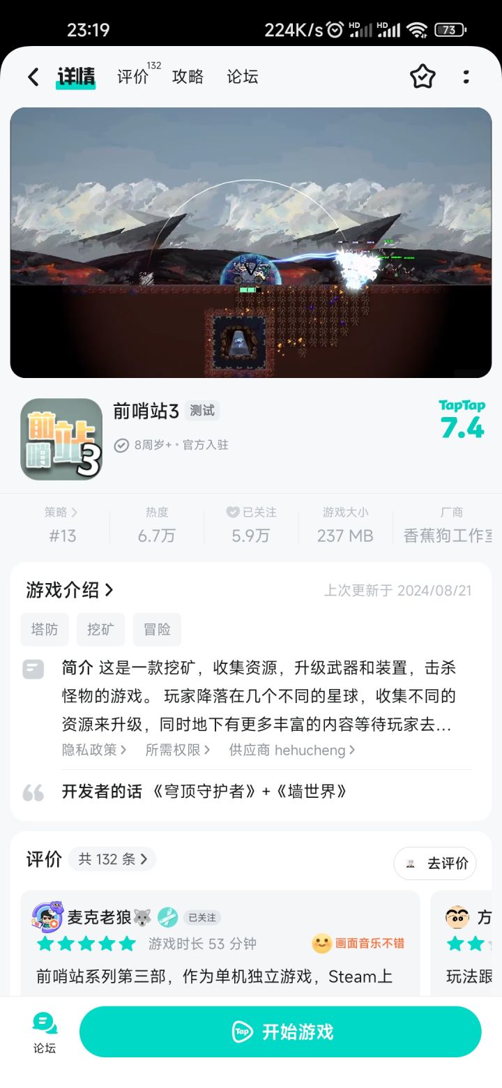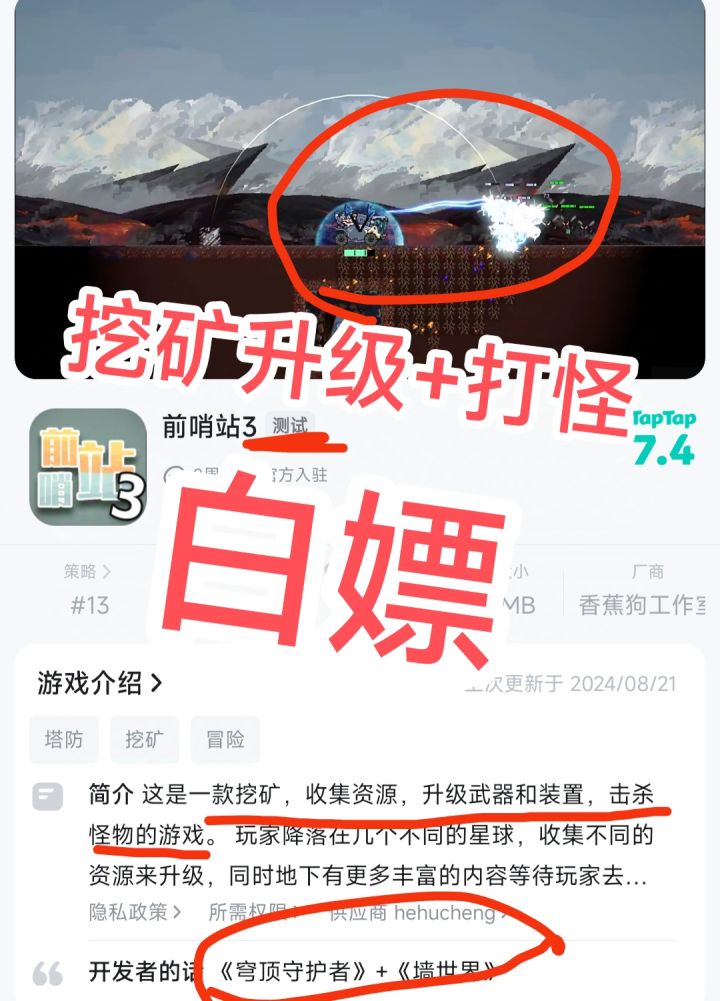 🎮《前哨站3》系列第三部✅作者简介🤔“借鉴”了steam热门的两款游戏当然游戏本身在steam有号✅玩法(或许你看过前两款游戏其他平台直播)挖矿→带回材料→升级武器/挖矿技能……防守每一次敌人(怪物间隔时间进攻需要回车里防御)有关卡选择还有无尽模式……——关键是steam要钱→手机完全白嫖无广告,无内购,良心游戏(虽然某些物品PC才能用)已经很香了,试试❓#前哨站3 #吃