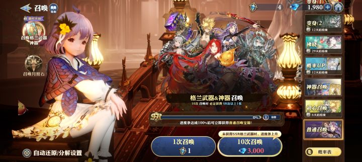 玩了有一周多了,福利什麼的比某元某潮要好,第一天就能幾十抽,而且幾率挺高,兩次雙黃,三四次一個金。畫面也比較好,能看出開發人員比較用功,戰鬥的時候每一個角色都有表情,而且不同技能有不同表情,動作比較絲滑,這個時候基本上都有動作綁定了。遊戲主要是格蘭武器和神器,免費給的ssr不少,而且每個角色必給兩個格蘭武器,防具ssr的副本可刷,一周成果視頻有顯示。估計國服出來肯定福利更好,不好我也不會跳槽[表情_斜眼笑]