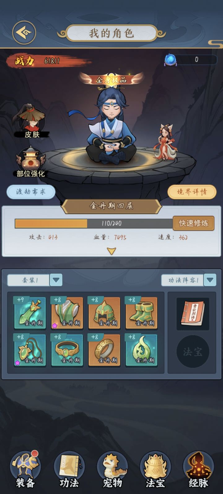 游戏荒了,想来点肉鸽打发时间,然后入了这款游戏。关卡打法以构筑功法为主,个人玩了几天,主要以龙宫+狂刀+灵剑+练体+玄医为主,又有伤害续航还强,百暴不要太爽养成以看广告为主,这和其他的广告模拟器游戏一样,卡关严重,内容较少。作为休闲挂机游戏还是不错的。#剑与魔龙 #剑与魔龙游戏