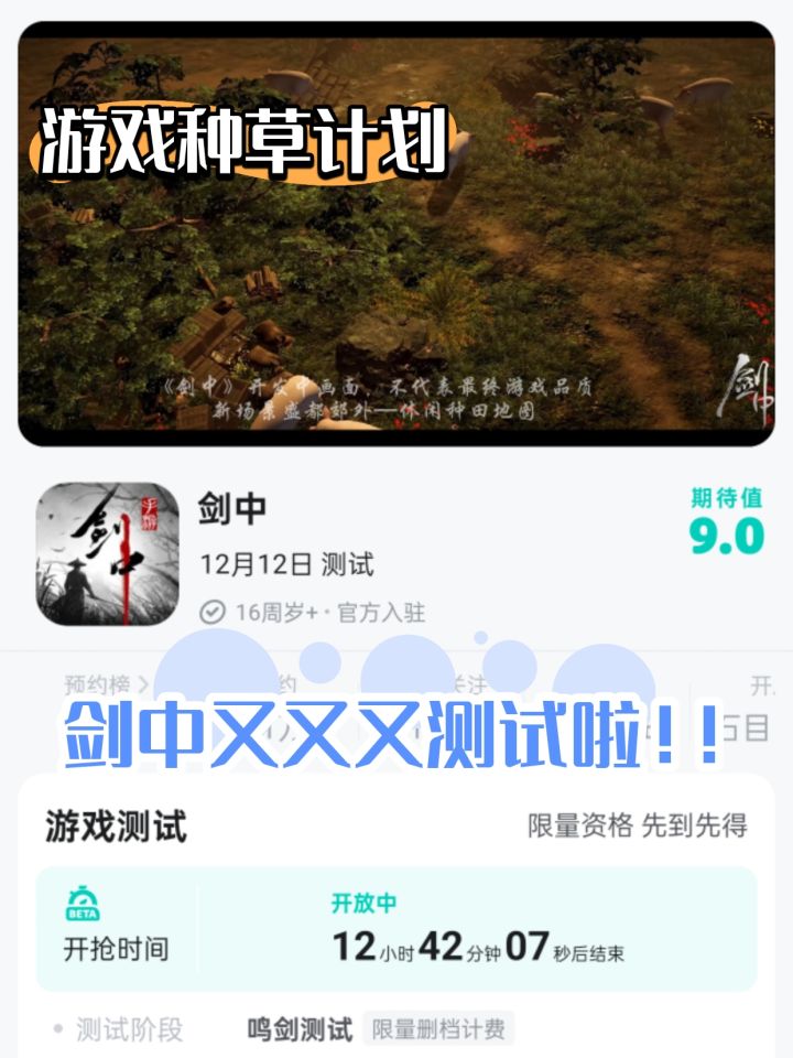 《剑中》又又又开启测试啦!这次测试时间为9月12日至9月26日,持续两周!本次测试只发放1000个名额,只发一个小时,发完为止,大家抓紧点击右下方“参与测试”下手呀!PS:最近太忙啦没什么时间玩,发个活动,留言+关注小风,超过30人评论,就抽一位朋友送上激活码,时间截止12日晚9点,没人的话就自己用啦!#游戏种草计划 #游戏安利 #游戏推荐 #剑中