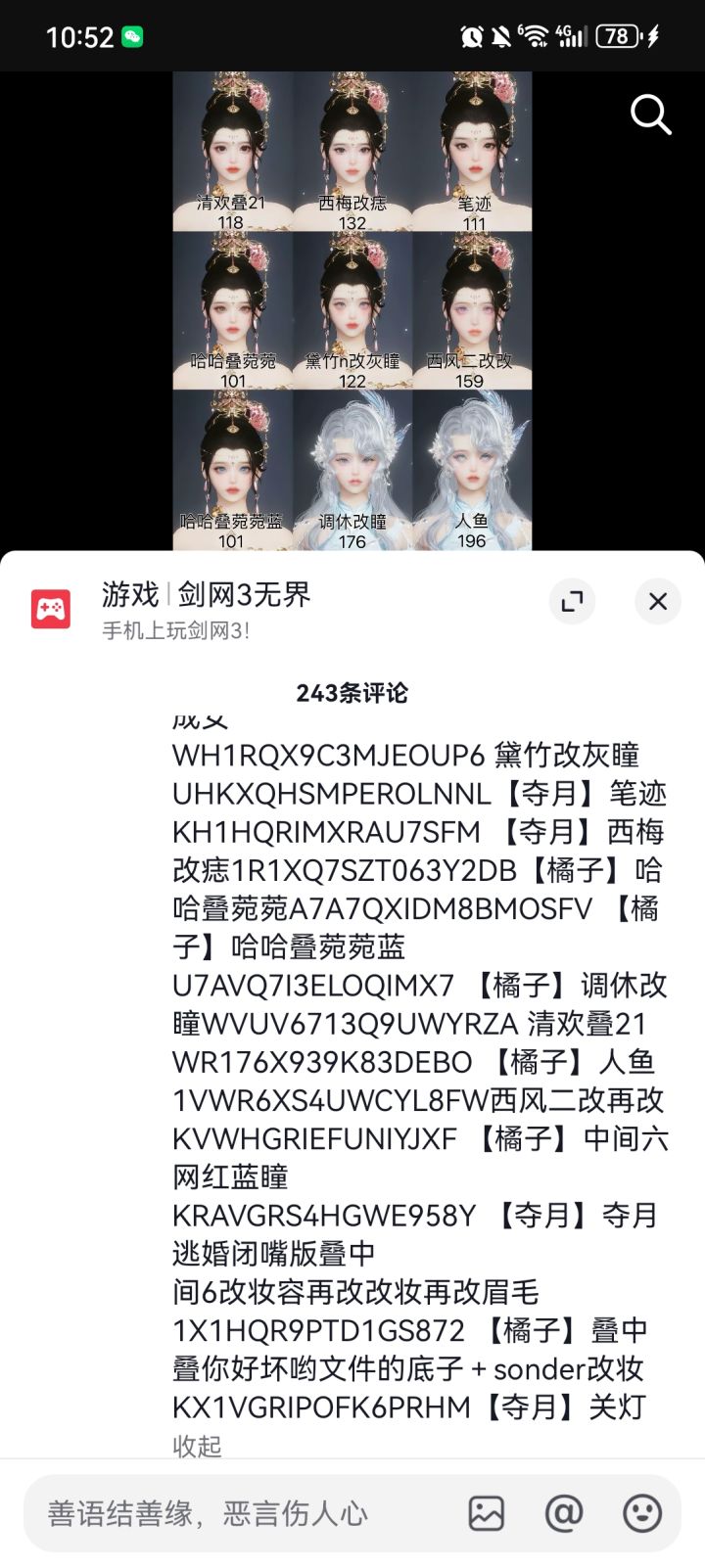 #剑网3无界捏 脸码