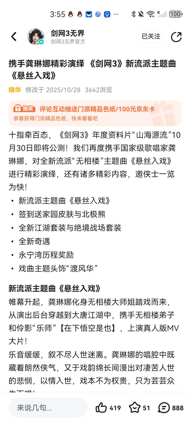 携手龚琳娜精彩演绎 《剑网3》新流派主题曲《悬丝入戏》https://www.taptap.cn/moment/732256079001421257?share_id=e7cbde6ca706&utm_medium=share&utm_source=copylink#剑网3无界 #剑网3无界漂亮 #剑网3无界创作征集令 #欢迎大家来玩剑网3无界 #剑网3无界捏 #剑网3无界咸鱼去头可食 #剑网3