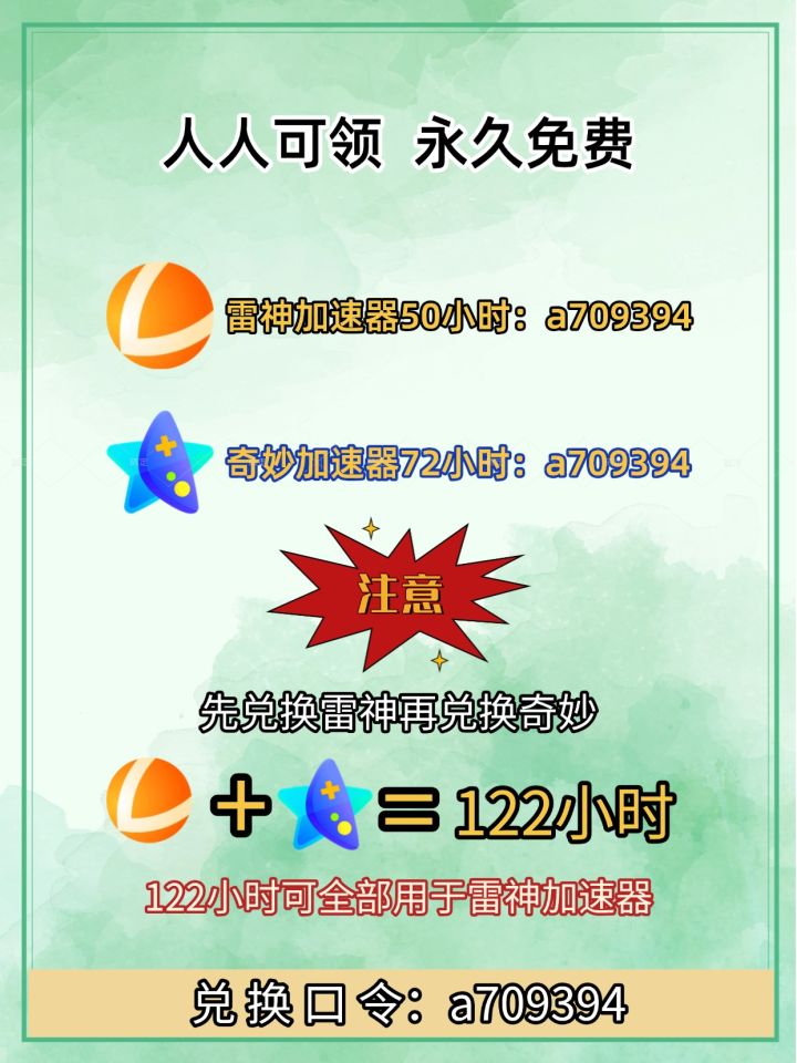最新免费加速器口令兑换码!奇游加速器/UU加速/雷神天卡周卡月卡