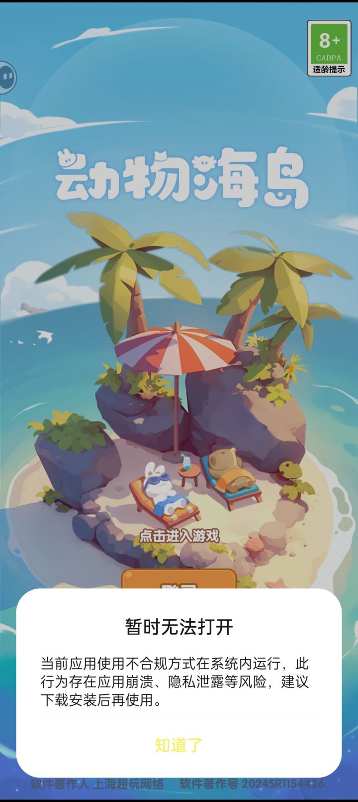 今天打开就一直弹这个出来,没有办法好好玩游戏了……#动物海岛TapTap测试版 #动物海岛